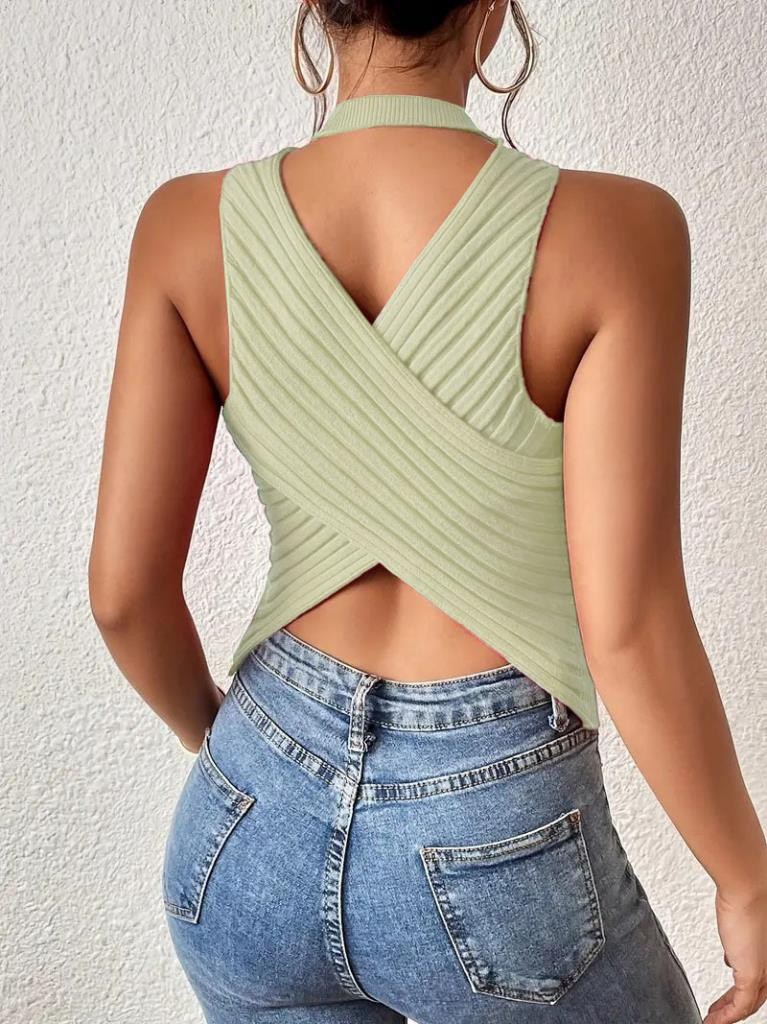 Kadın Kolsuz Sırt çapraz Detay Triko Bluz