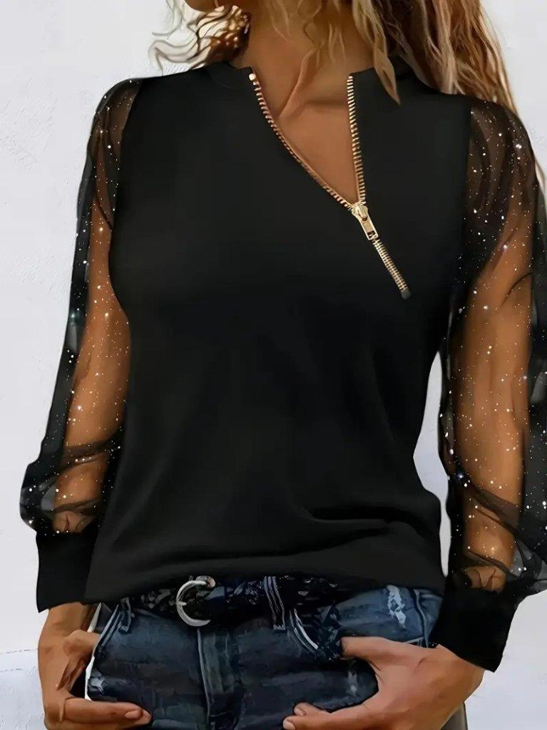 Kadın Uzun Kollu Asimetrik Fermuar Detaylı Viskon Iki Iplik Bluz