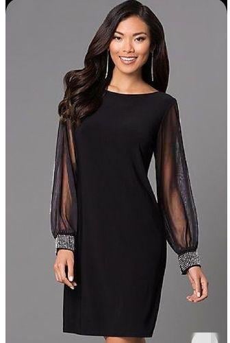 Kadın Uzun Kollu Bisiklet Yaka Kollar Tül Manşet Taş Işlemeli Sandy Elbise