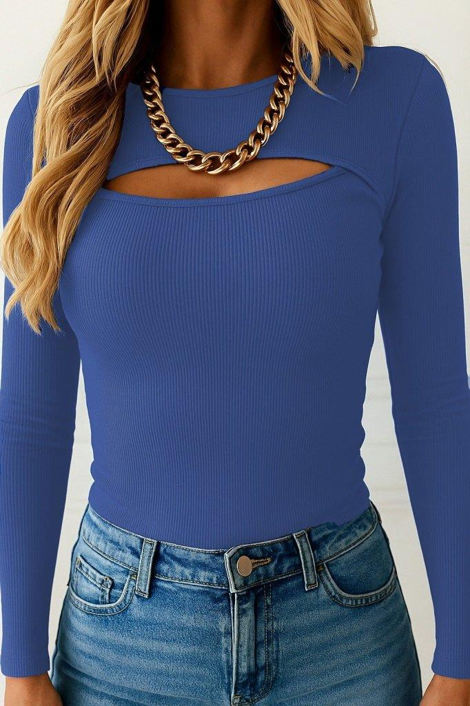 Kadın Uzun Kollu Pencere Detaylı Kaşkorse Bluz