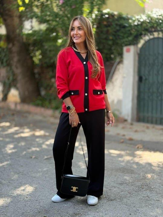 Kadın Uzun Kollu Ribanali Cep Detay Hırka Ve Bol Paça Pantolon Ikili Takım