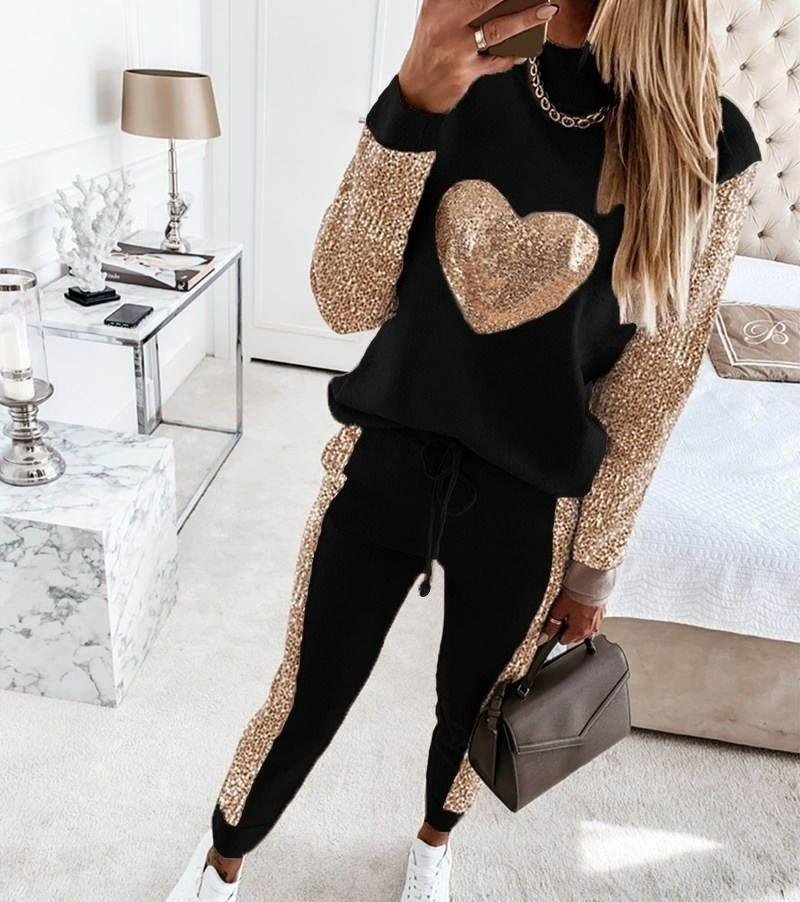 Kadın Uzun Kollu Yarım Balıkçı Yaka Pul Payet Detay Iki Iplik Ikili Takım