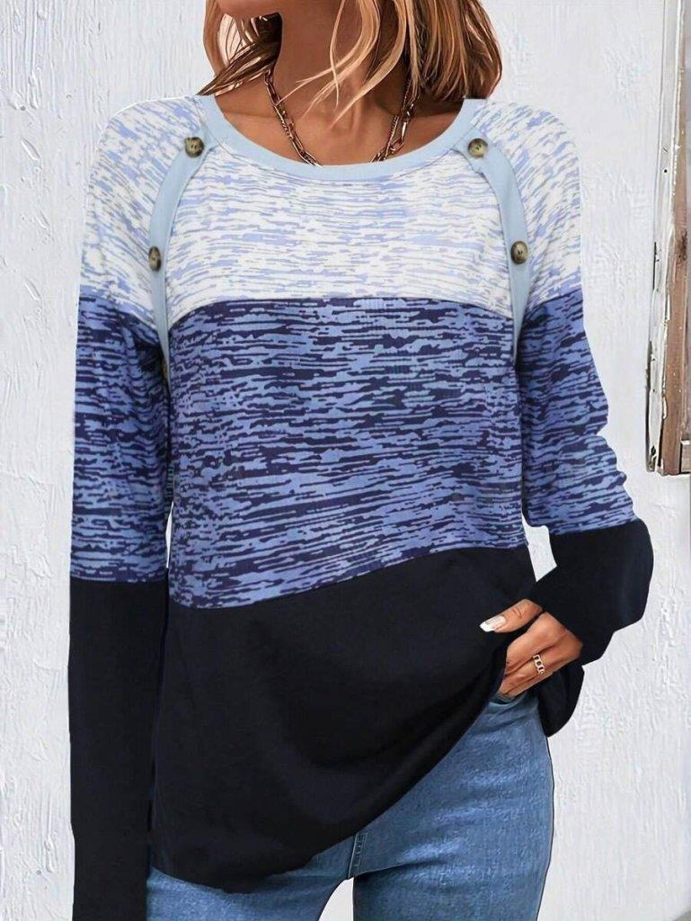Kadın Uzun Kollu Yuvarlak Yaka Baskılı Düğme Detay Süprem Bluz