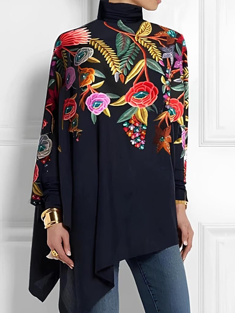 Kadın Uzun Kollu Balıkçı Yaka Asimetrik Kesim Mikro Bluz